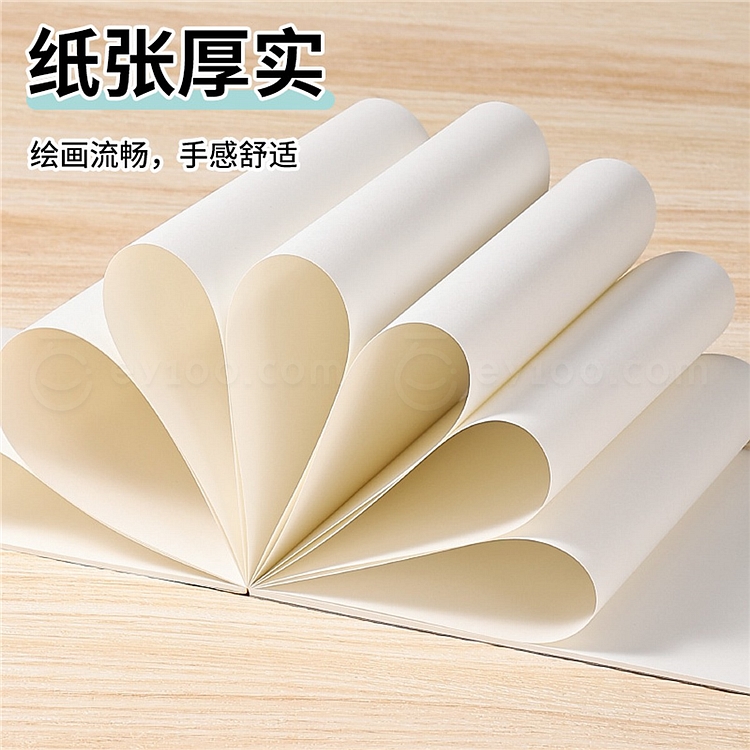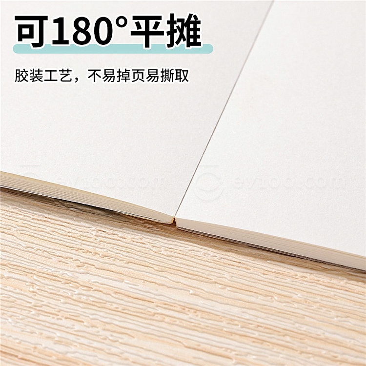 纸张厚实,可180°平摊;胶装工艺,不易掉页易撕取