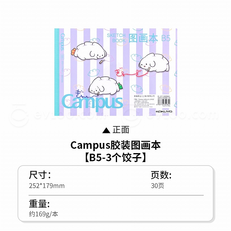 国誉 Campus 胶装图画本(空白) (三个饺子) B5/30页 WCN-CSKB0133
