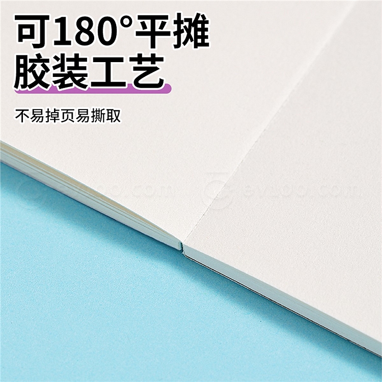 纸张厚实,可180°平摊;胶装工艺,不易掉页易撕取
