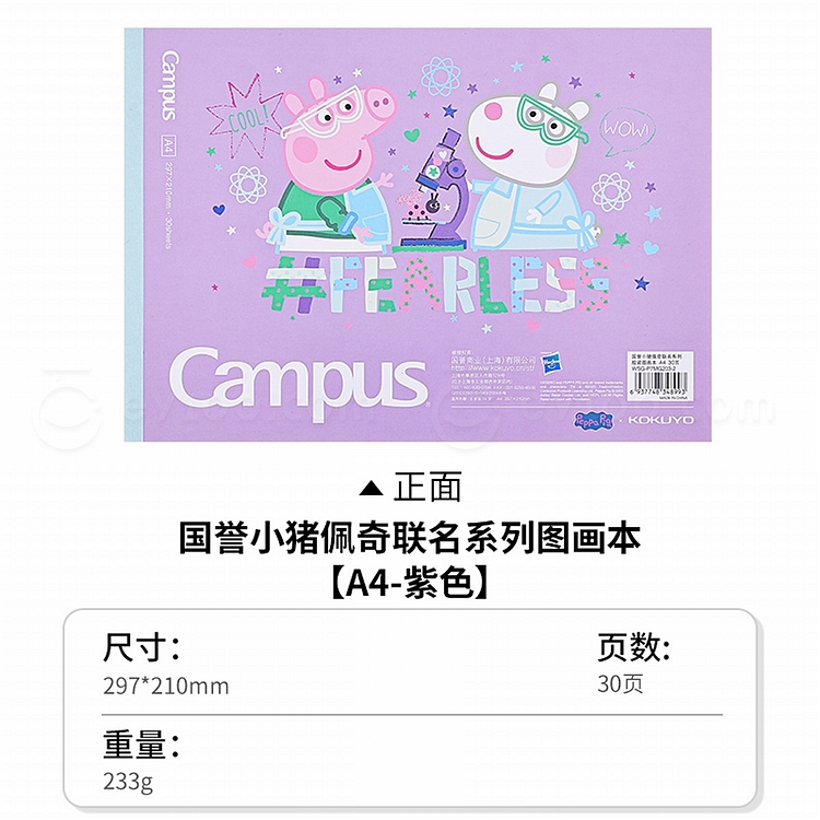 国誉 小猪佩奇 Campus 胶装图画本(空白) (紫色) A4/30页 WSG-P7MG203-2