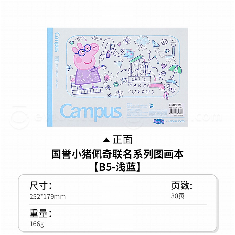 国誉 小猪佩奇 Campus 胶装图画本(空白) (浅蓝) B5/30页 WSG-P7MG003-2