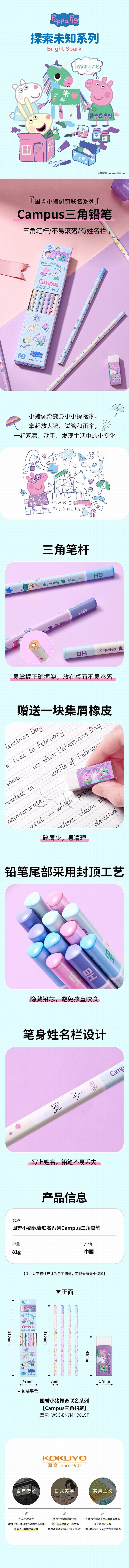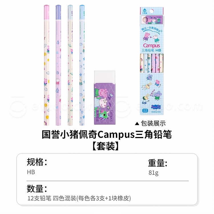 国誉 小猪佩奇 Campus 铅笔橡皮套装 (混色) HB 12支/盒 WSG-EN7MHB01ST