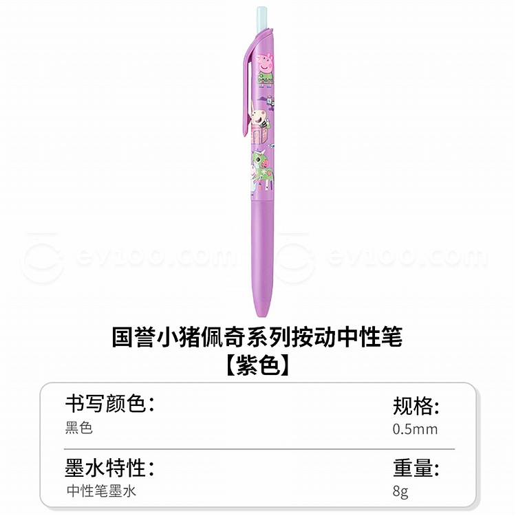 国誉 小猪佩奇 按动中性笔 (紫色笔杆) 0.5mm 黑芯 WSG-PR7M3065-1