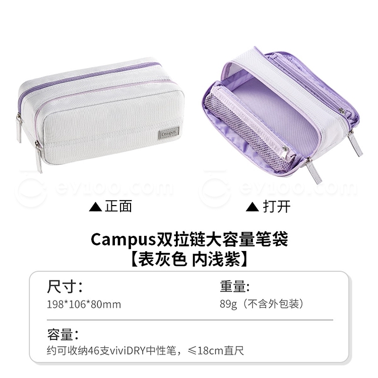 国誉 Campus 双拉链大容量笔袋 (浅紫) 大号 WSG-PC333LV
