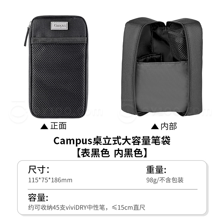 国誉 Campus 桌立式大容量笔袋 (黑色) 大号 WSG-PC343D