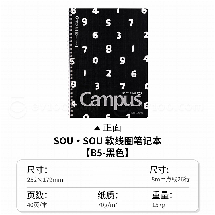 国誉 SOU SOU Campus软线圈笔记本 (黑色) B5/40页 8mm点线 WSG-SR1XB540-5