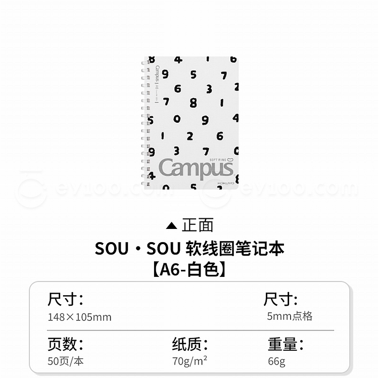 国誉 SOU SOU Campus软线圈笔记本 (白色) A6/50页 5mm点格 WSG-SR1XA650-2
