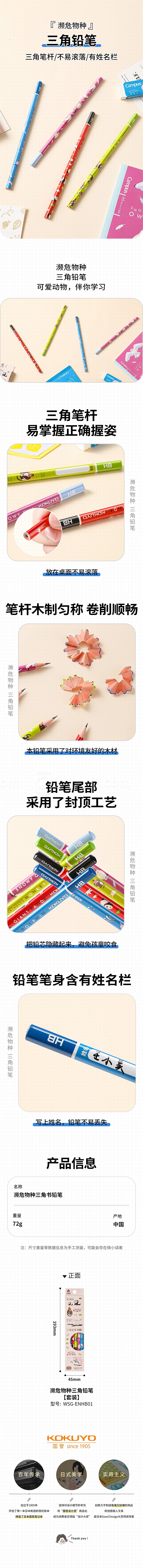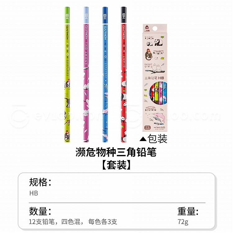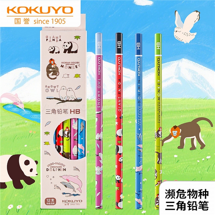 国誉 三角书写铅笔(濒危物种) (4色混装) HB 12支/盒 WSG-ENHB01