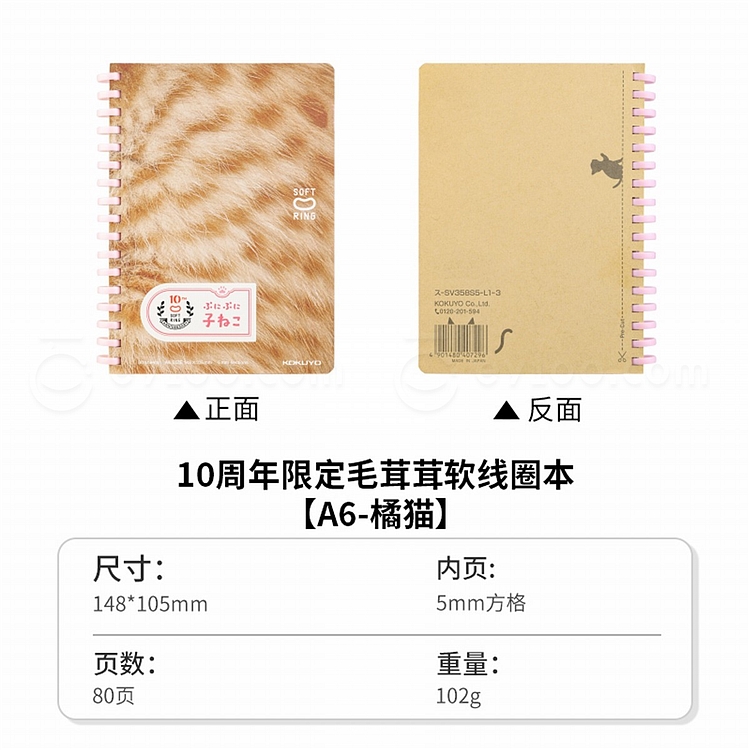 国誉 毛茸茸软线圈(10周年限定) (橘猫) A6/80页 5mm方格 SU-SV358S5-L1-3