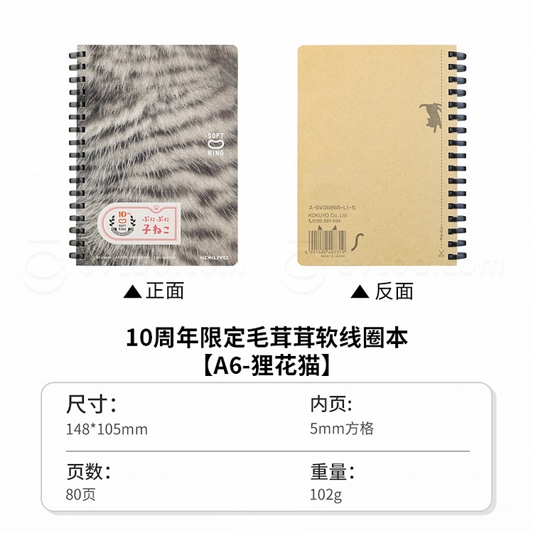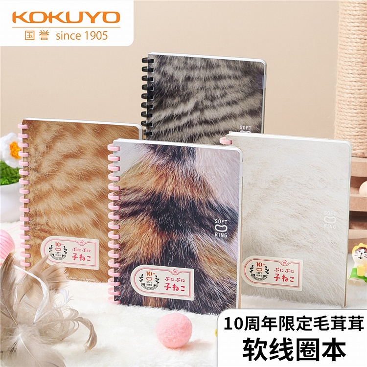 国誉 毛茸茸软线圈(10周年限定) (狸花猫) A6/80页 5mm方格 SU-SV358S5-L1-5