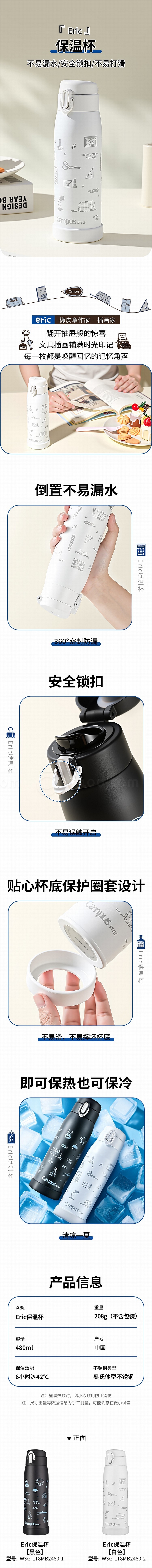 国誉 eric 保温杯 (白色) 480ml WSG-LT8MB2480-2