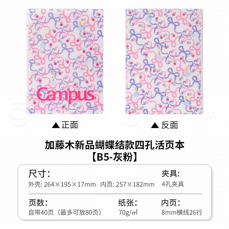 国誉 Campus四孔活页本(加藤木) (灰粉) B5/40页 WSG-RUP81-2