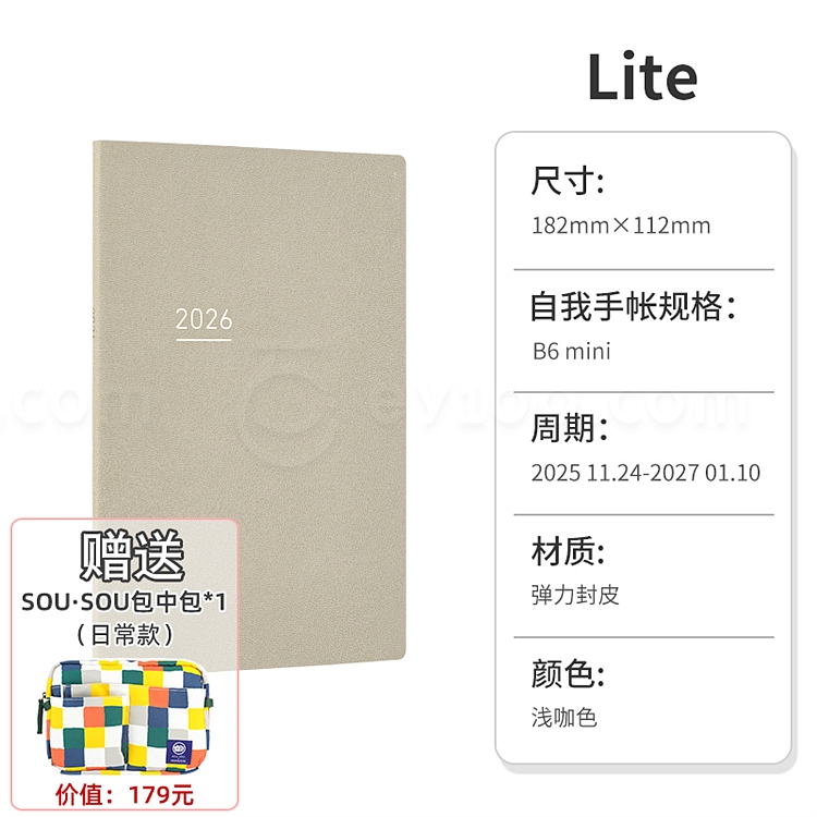 凡购买国誉2026年自我手账本1本,即赠送1个国誉SOUSOU包中包,多买多赠,赠品数量有限(50个),赠完即止!