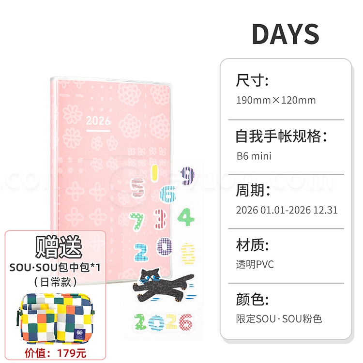凡购买国誉2026年自我手账本1本,即赠送1个国誉SOUSOU包中包,多买多赠,赠品数量有限(50个),赠完即止!
