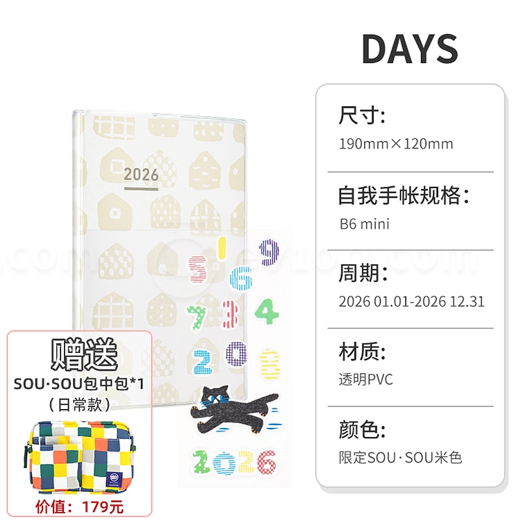凡购买国誉2026年自我手账本1本,即赠送1个国誉SOUSOU包中包,多买多赠,赠品数量有限(50个),赠完即止!