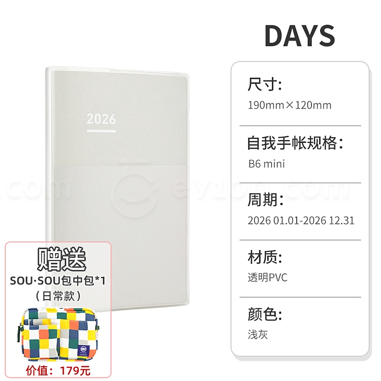 凡购买国誉2026年自我手账本1本,即赠送1个国誉SOUSOU包中包,多买多赠,赠品数量有限(50个),赠完即止!