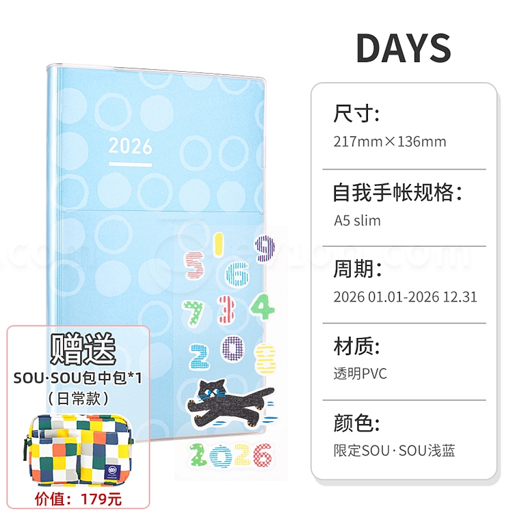 凡购买国誉2026年自我手账本1本,即赠送1个国誉SOUSOU包中包,多买多赠,赠品数量有限(50个),赠完即止!