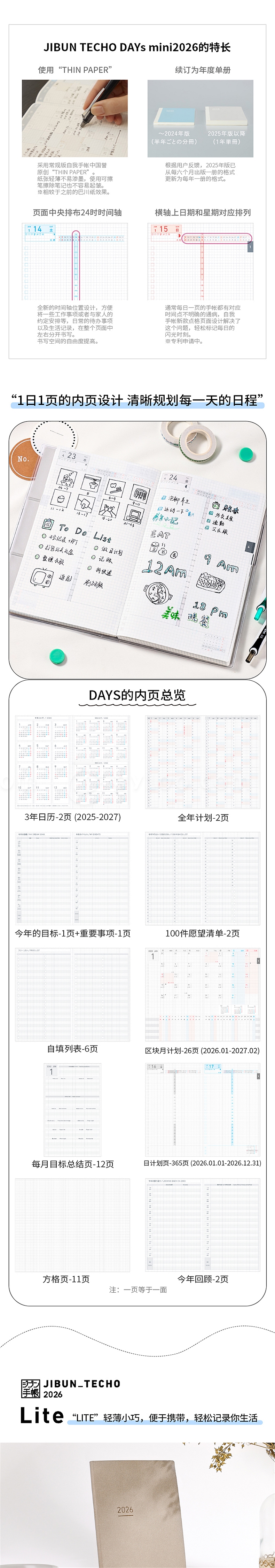 国誉 2026年days mini自我手帐(1日1页)(限定款) (浅蓝) slim A5/216页 NI-JD1L3-26