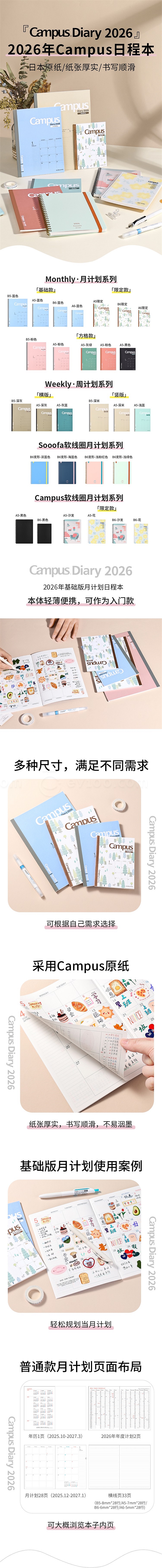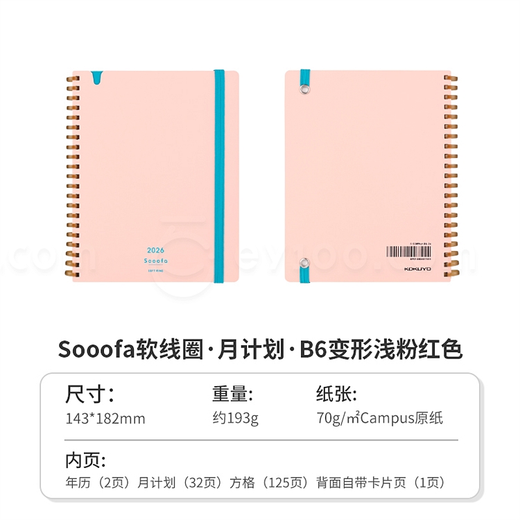 国誉 2026年Sooofa软线圈日程本 月计划 (浅粉) B6/80页 NI-SSMNLP-B6-26