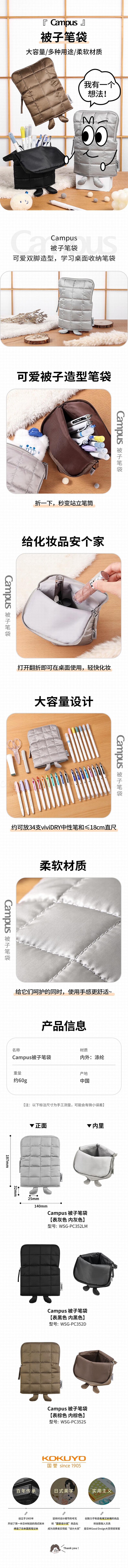 国誉 Campus 被子笔袋 (黑色) WSG-PC352D