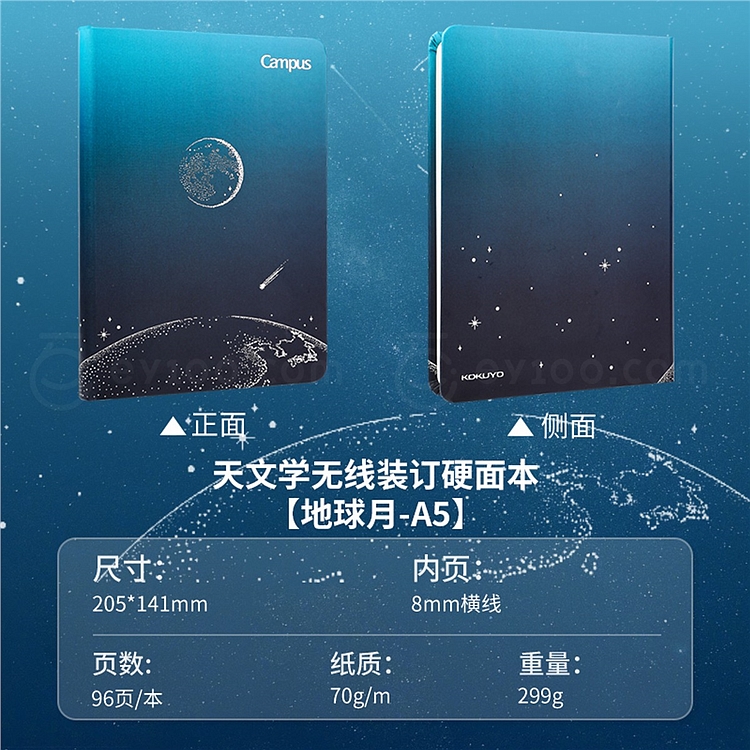 国誉 Campus无线装订硬面本(天文学) (地球月) A5/96页 8mm横线 WCN-CHN3975-1