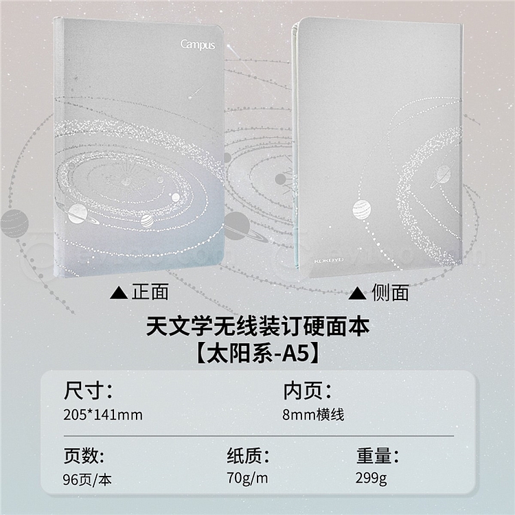 国誉 Campus无线装订硬面本(天文学) (太阳系) A5/96页 8mm横线 WCN-CHN3975-3