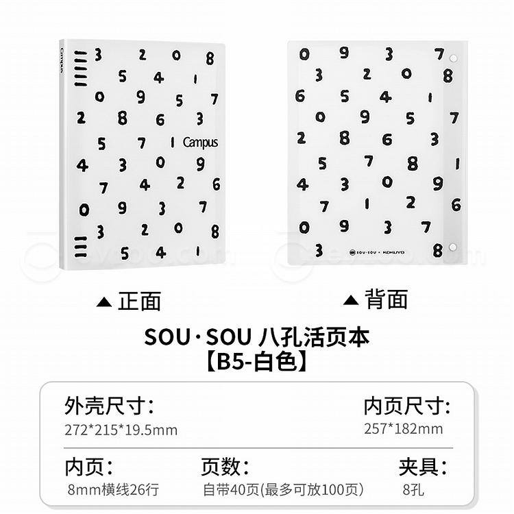 国誉 SOU SOU 紧凑型八孔活页本 (白色) B5/40页 8mm横线 WSG-RU1XP11-2