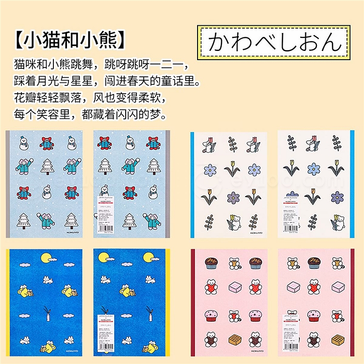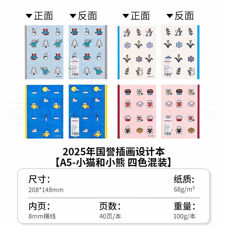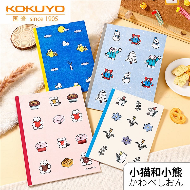 国誉 Illustrator无线装订本 小猫和小熊 (4色混装) A5/40页 8mm横线 4本/封 WCN-DNA54-J163