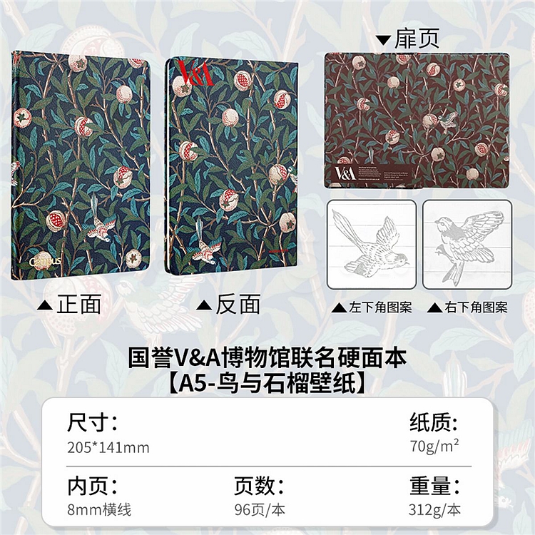 国誉 ×VA博物馆 无线装订硬面本 (Bird and Pomegranate) A5/96页 8mm横线 WSG-NBAME592-4