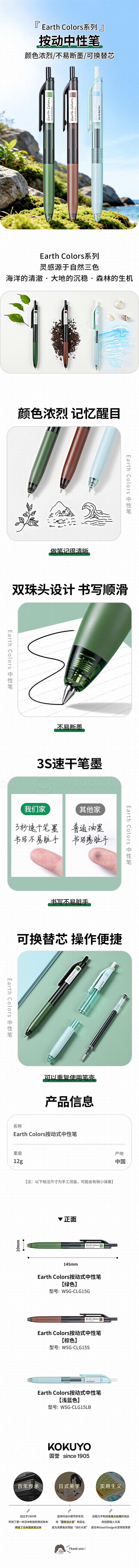 国誉 Earth Colors Campus按动中性笔 (绿色) 0.5mm黑芯 WSG-PRG3065G