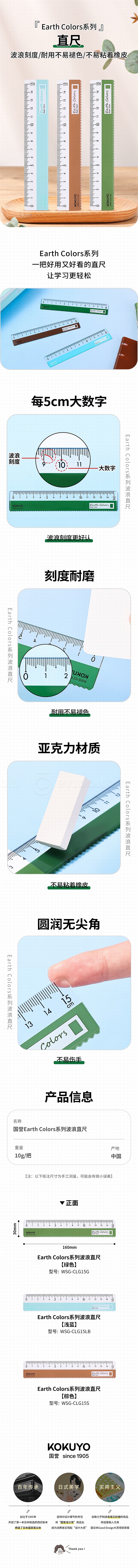 国誉 Earth Colors Campus波浪直尺 (浅蓝) 15cm WSG-CLG15LB