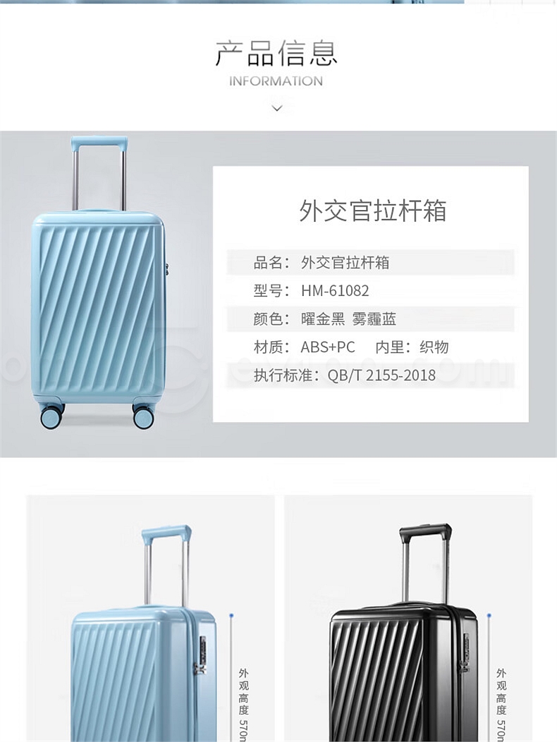 外交官 拉杆箱 (雾霾蓝) 20英寸 HM-61082-2
