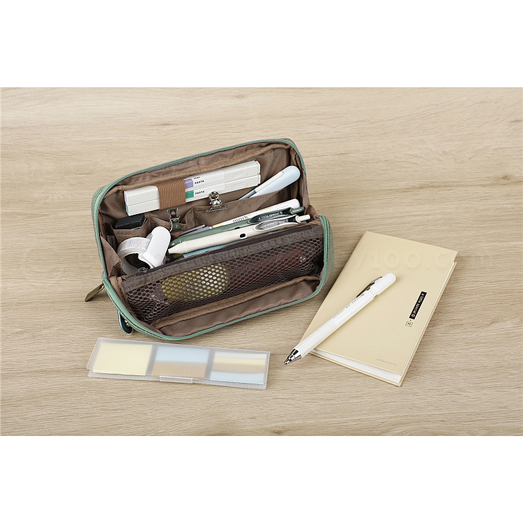 大开口设计,展开后立于桌面上,收纳物品一目了然,便于拿取文具。