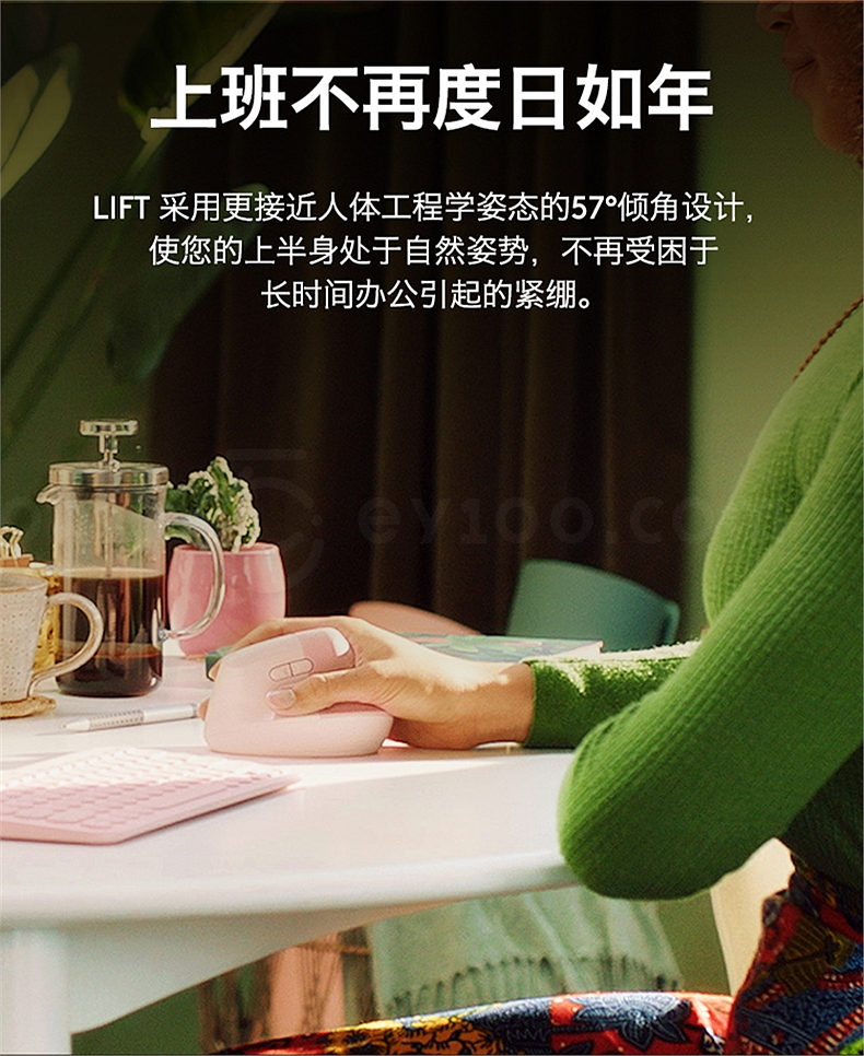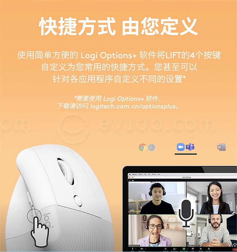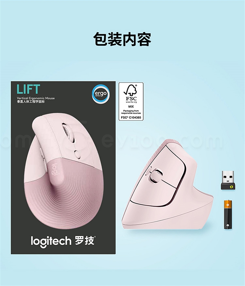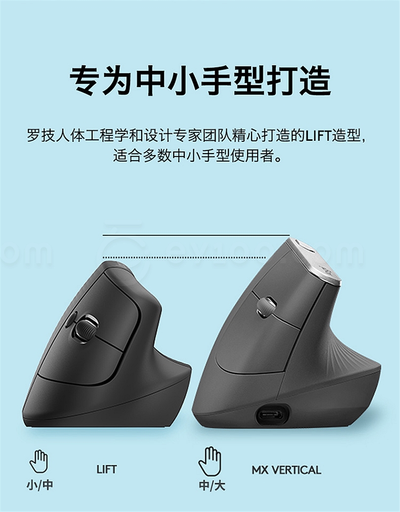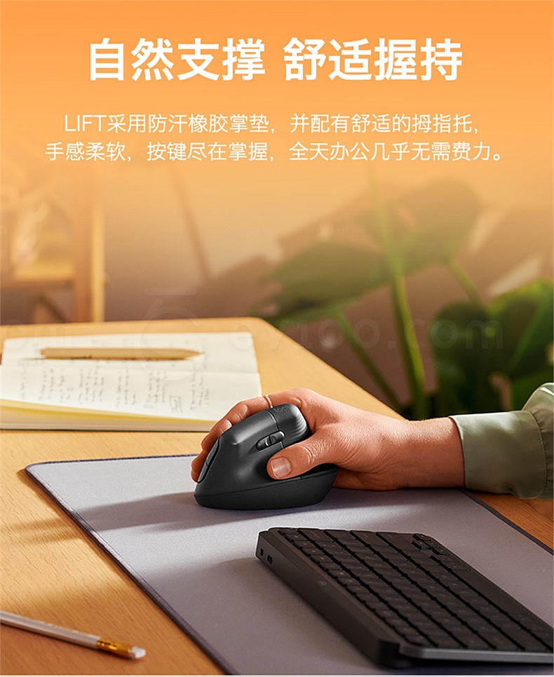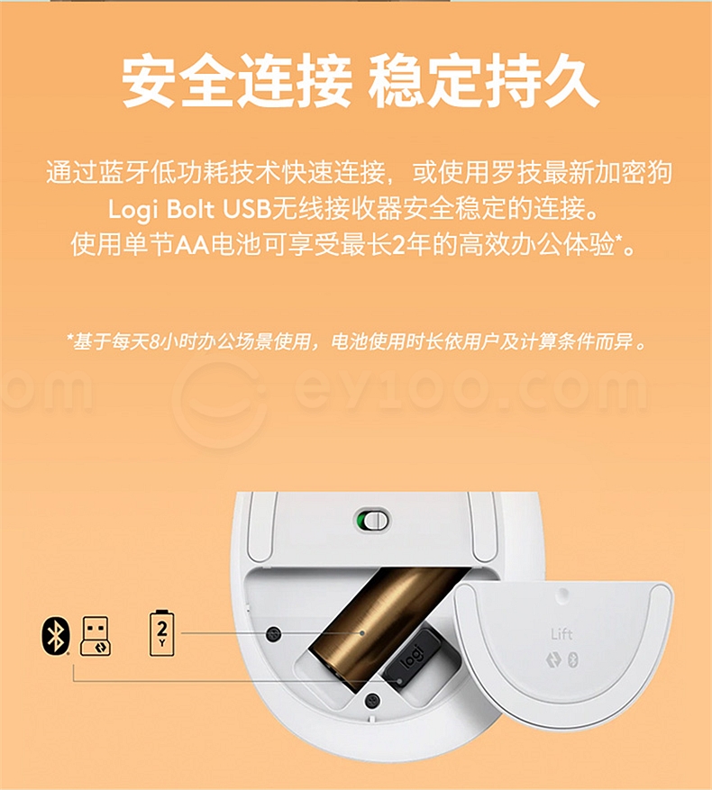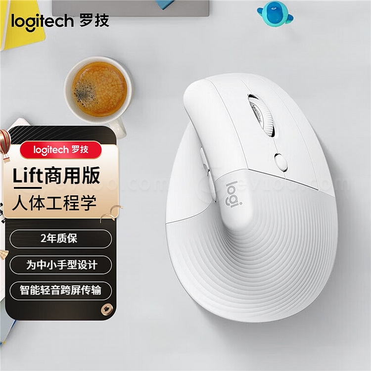 罗技 无线人体工学垂直鼠标 中小手型 (白色) Lift商用版(带Bolt接收器) Lift