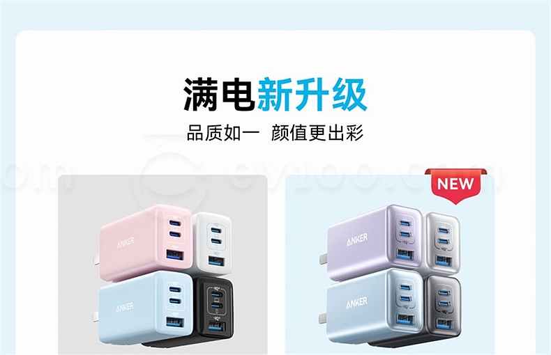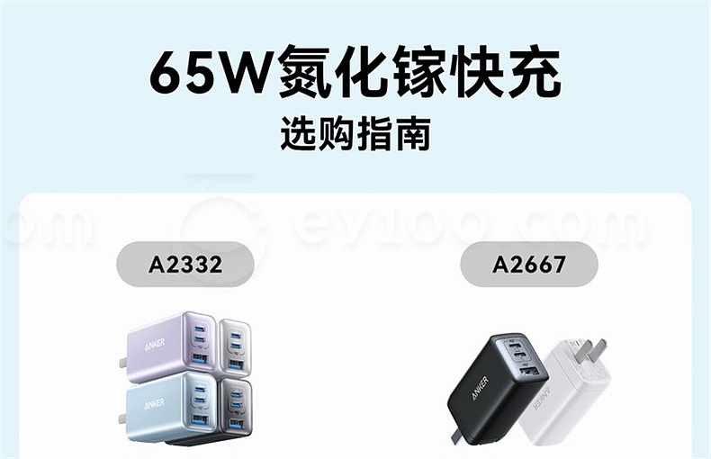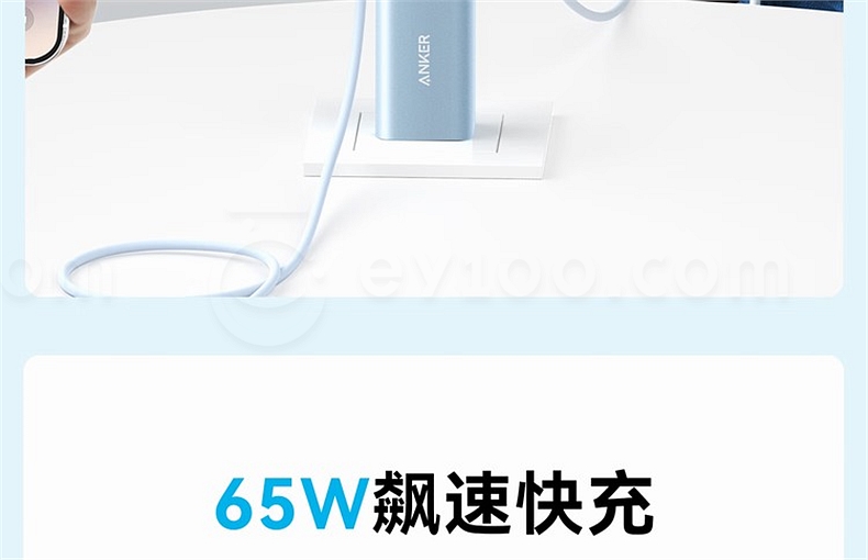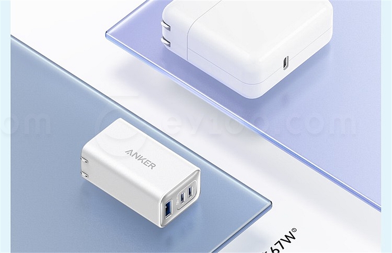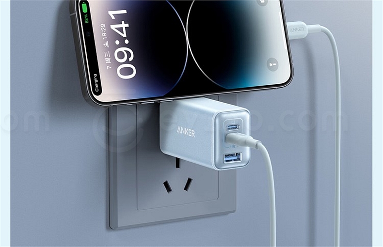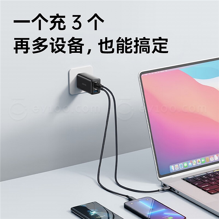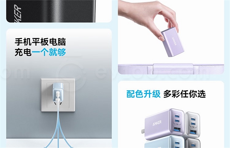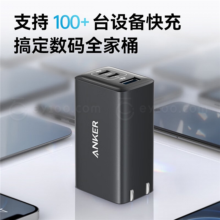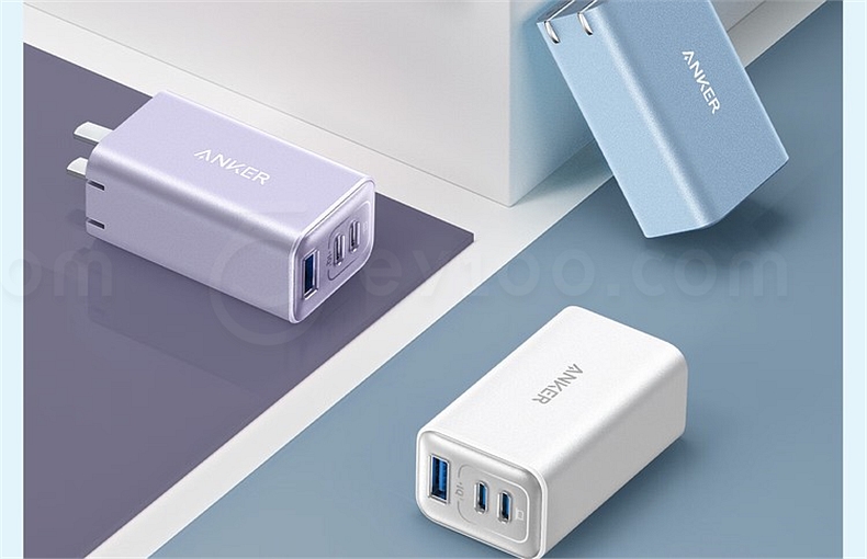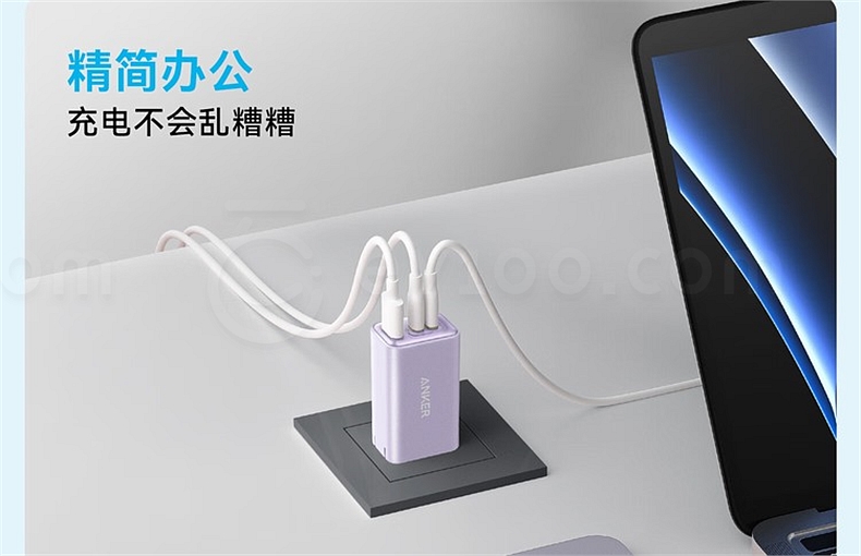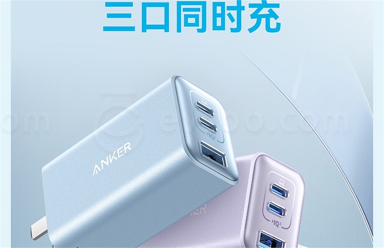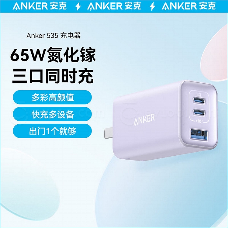 安克 ANKER 65W氮化镓 三口充电器PD快充 (紫) A2332