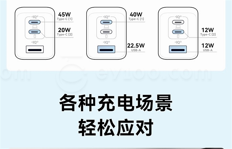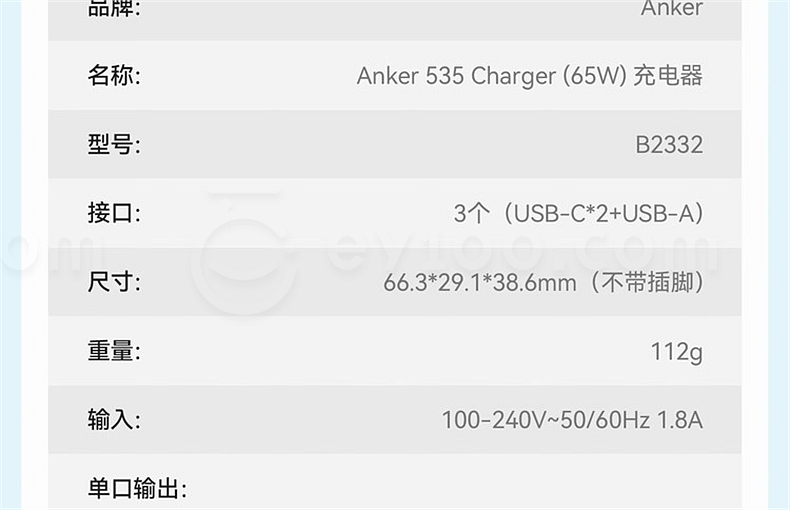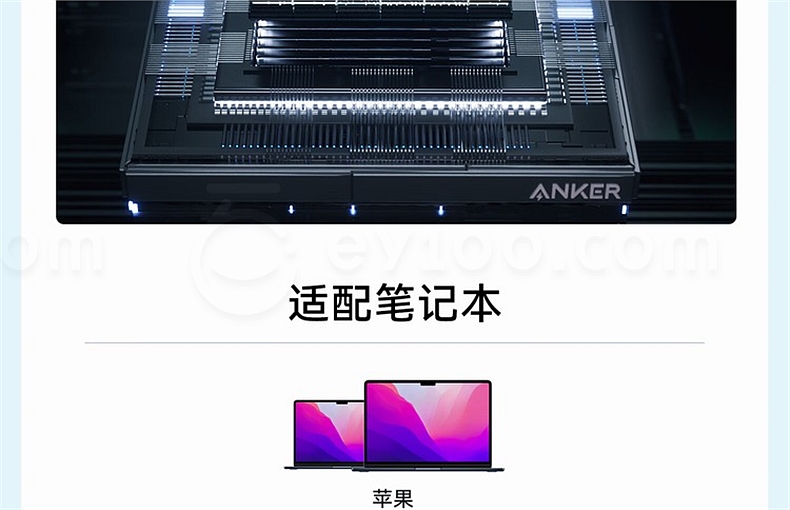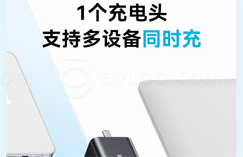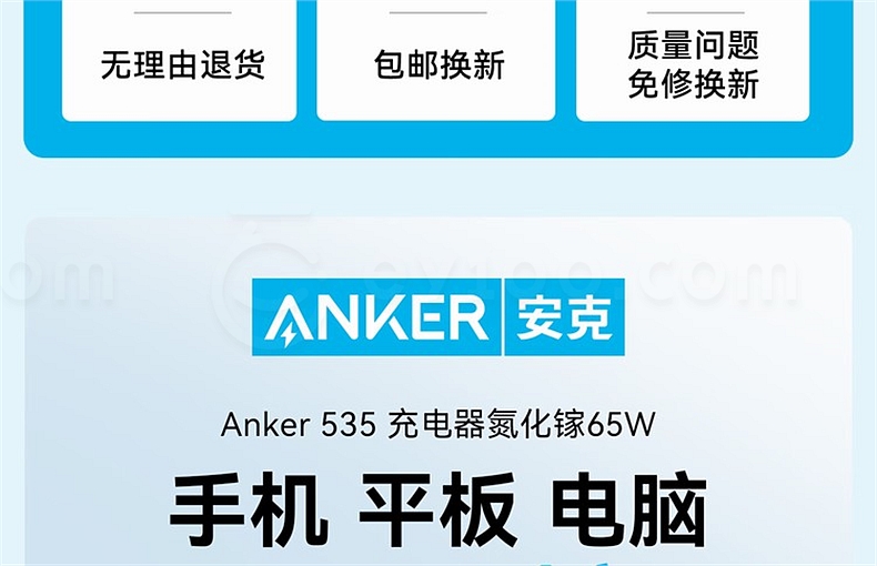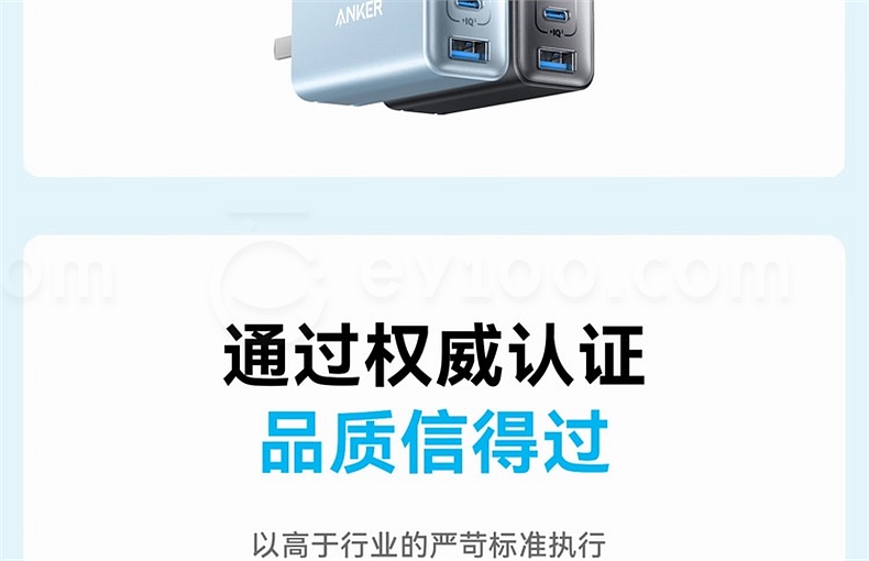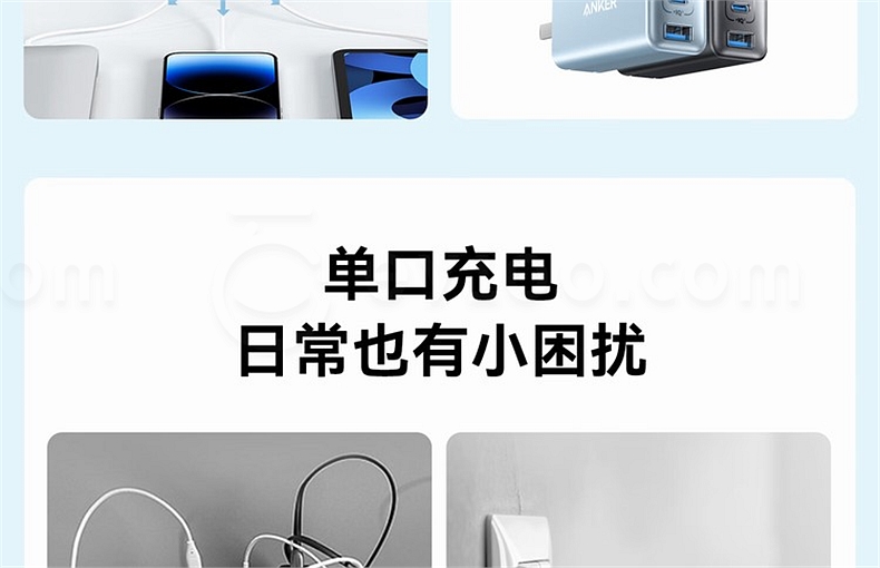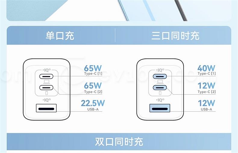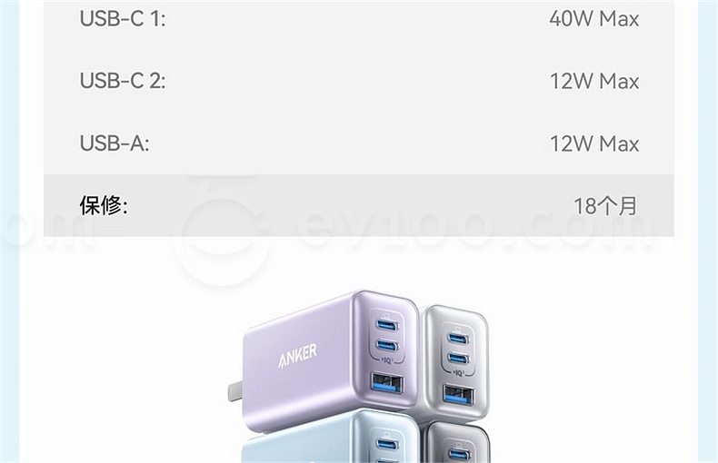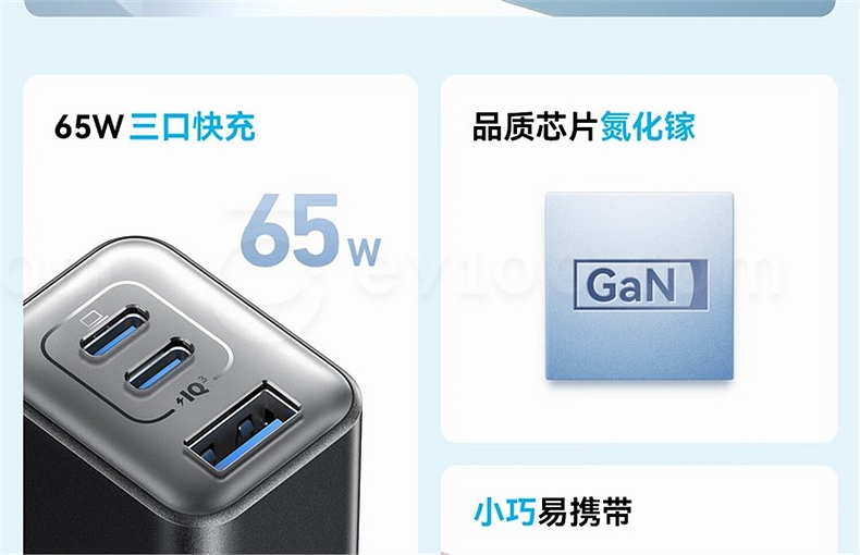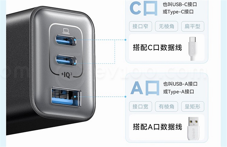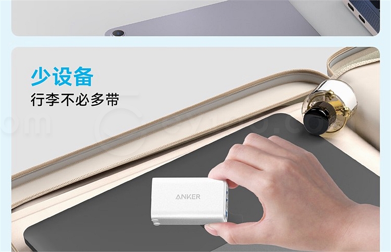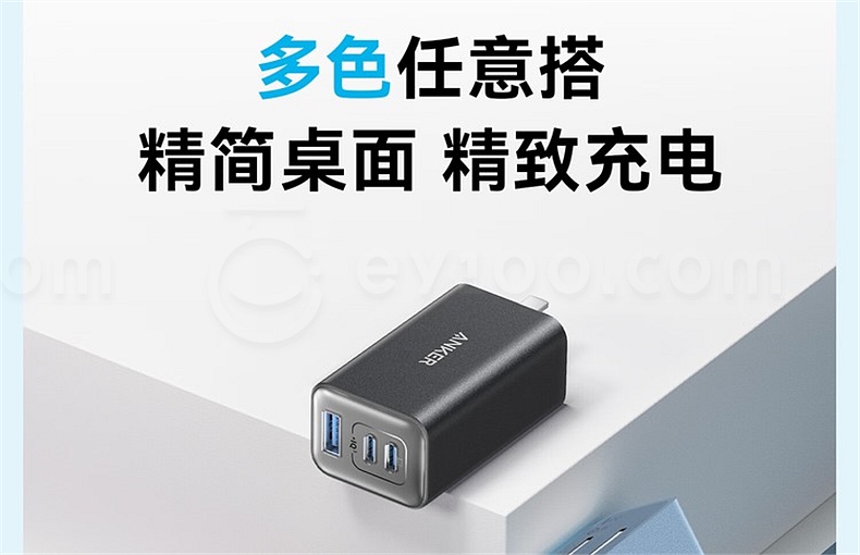 安克 ANKER 65W氮化镓 三口充电器PD快充 (紫) A2332