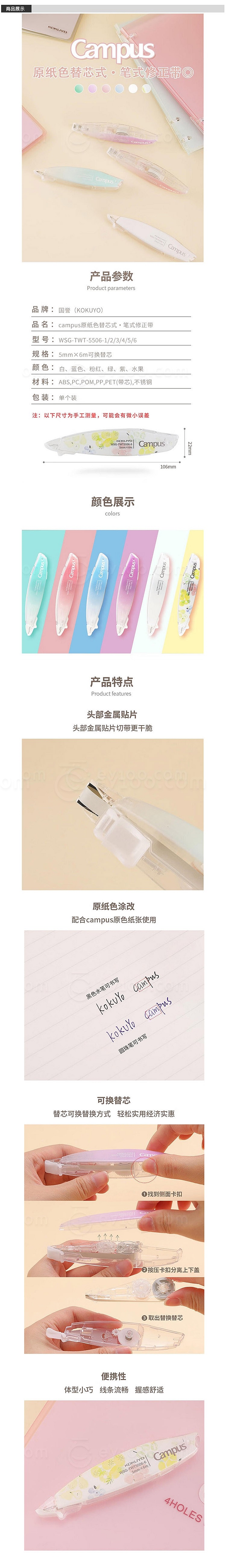 国誉 Campus原纸色替芯式笔型修正带 (绿色) 5mm*6m WSG-TWT5506-4