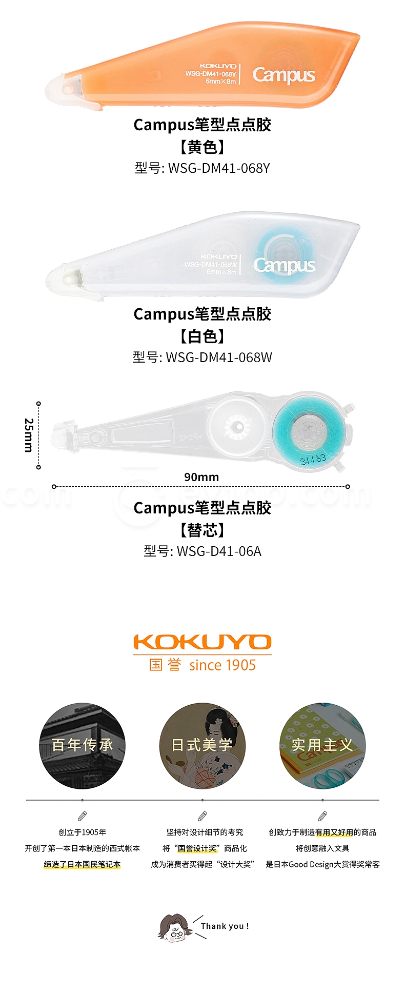 国誉 Campus笔型点点胶 (白色) 6mm×8m WSG-DM41-