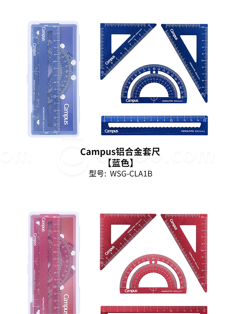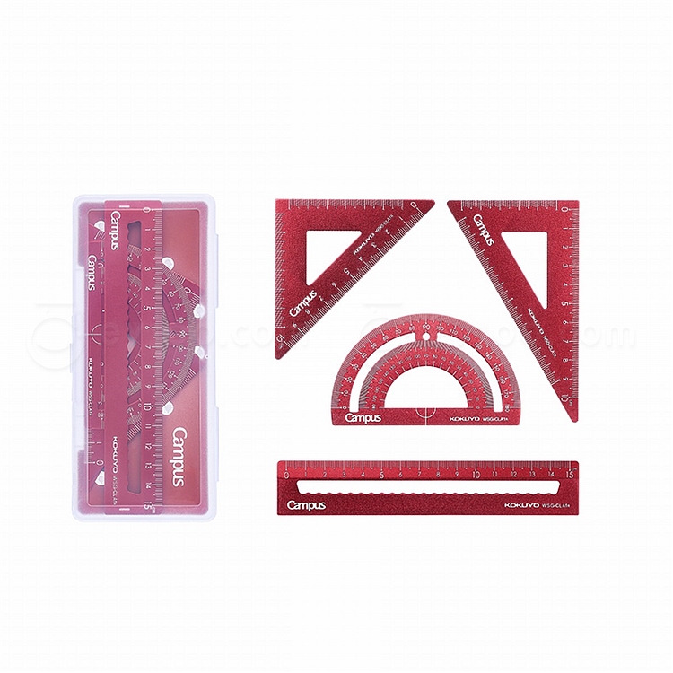 国誉 Campus铝合金套尺(直尺+三角尺+量角器) (红色) WSG-CLA1R