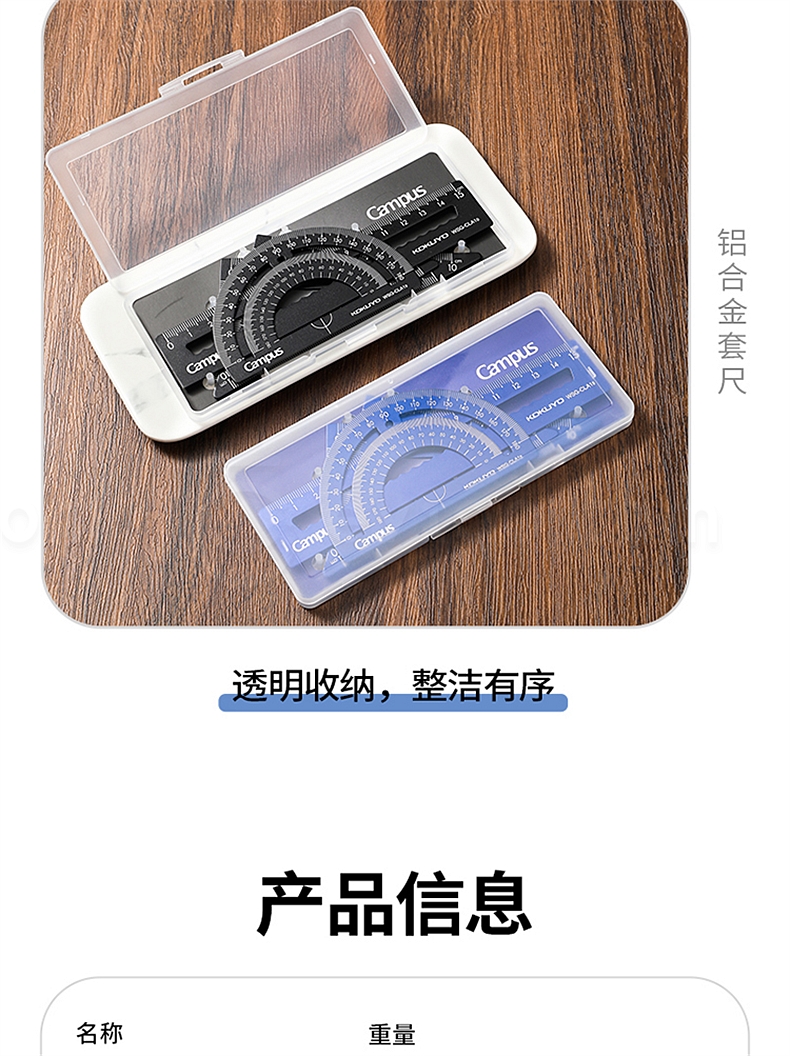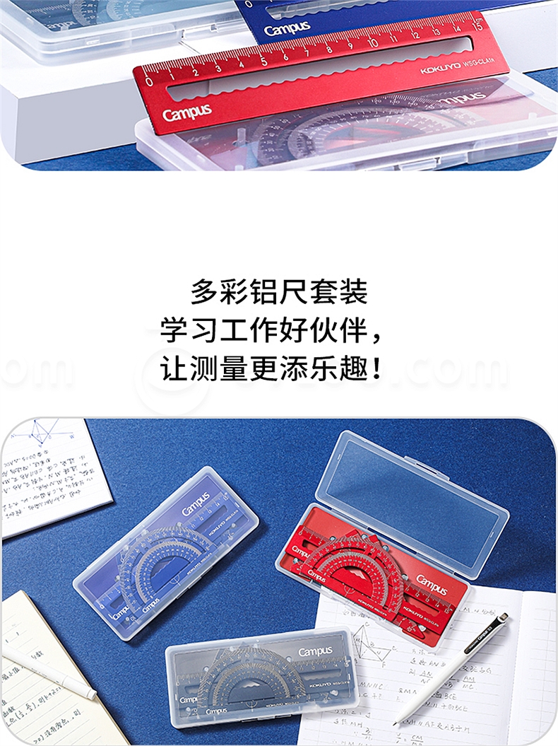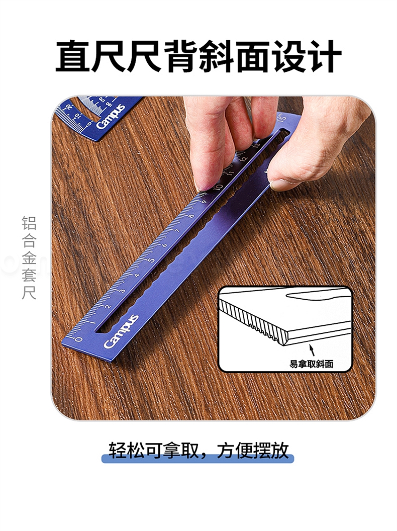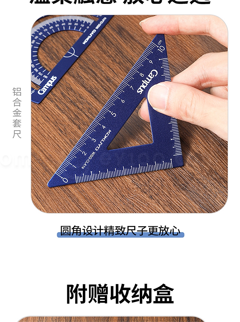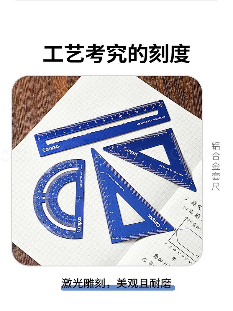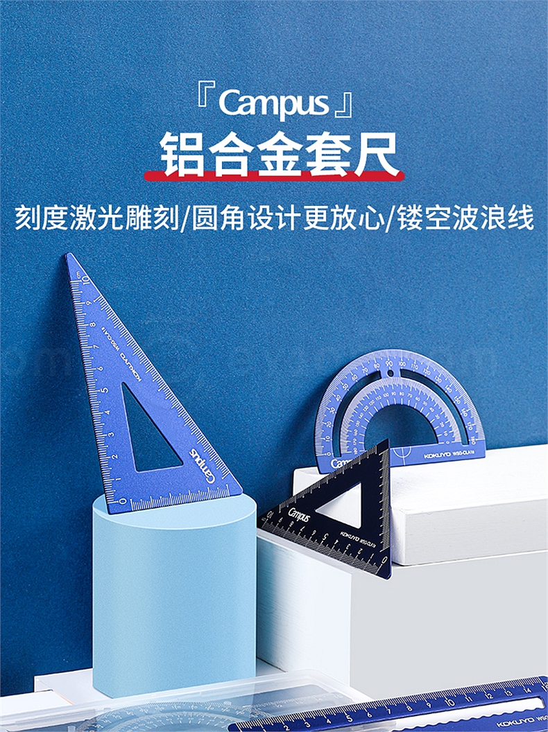 国誉 Campus铝合金套尺(直尺+三角尺+量角器) (蓝色