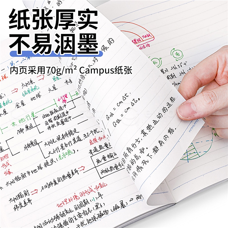 内页书写顺滑,采用日本进口纸张(70g/㎡),纸张细滑,牢固不掉页
