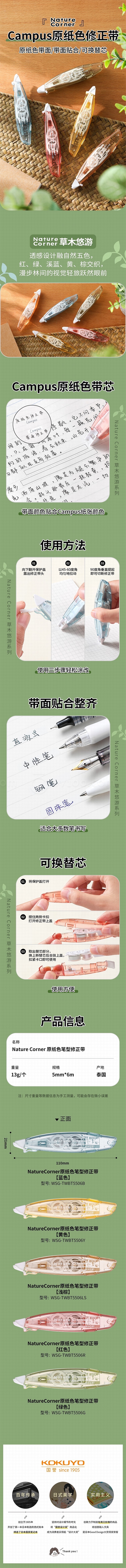 国誉 草木悠游 Campus原纸色替芯式笔型修正带 (浅