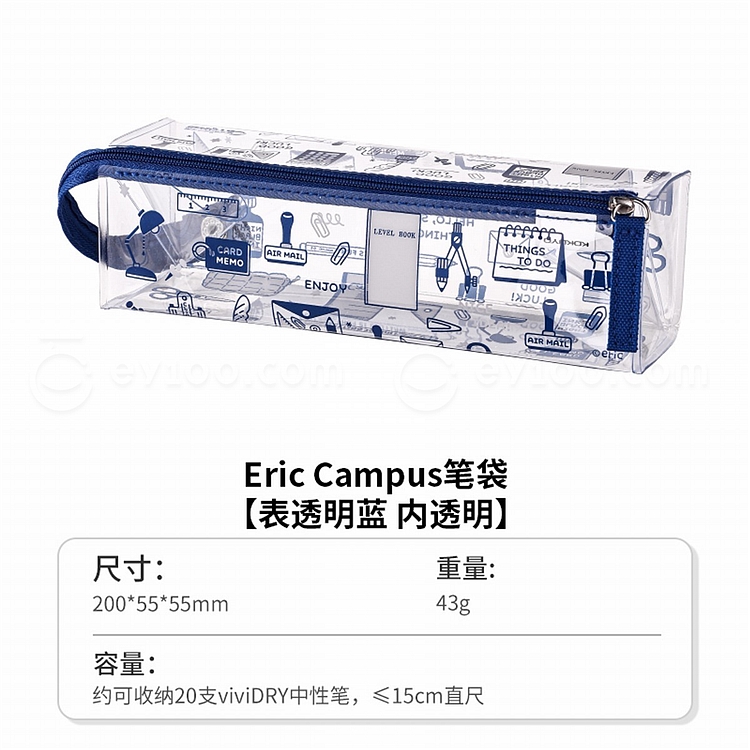 国誉 eric C2-R高透明笔袋 (蓝色) 大号 WSG-PC8M23-1
