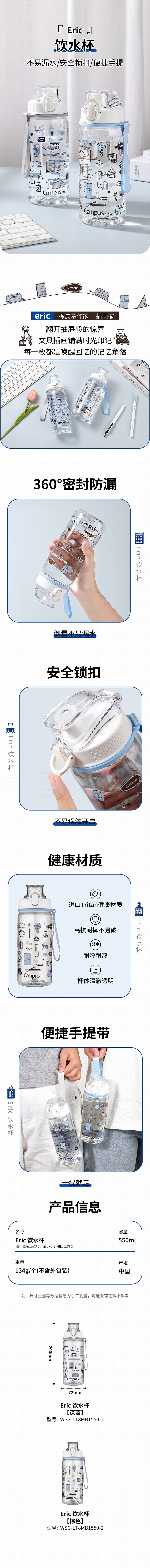 国誉 eric 饮水杯 (棕色) 550ml WSG-LT8MB1550-2