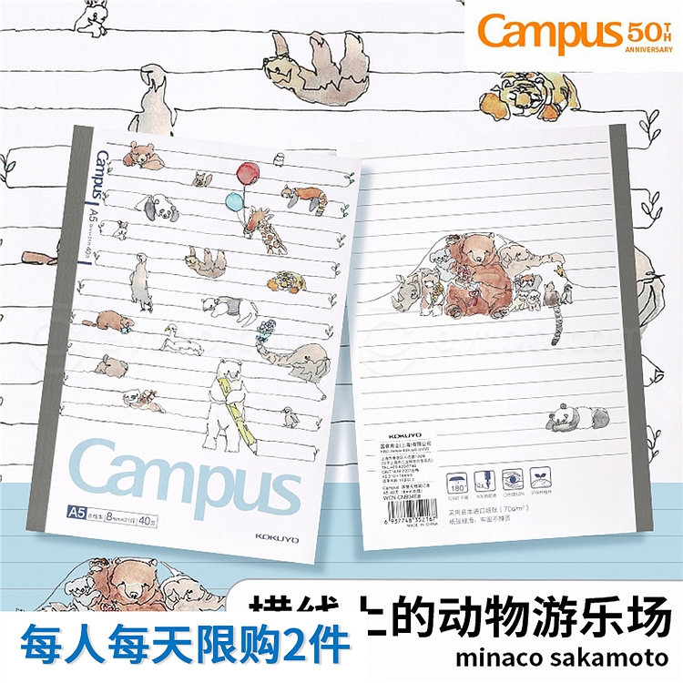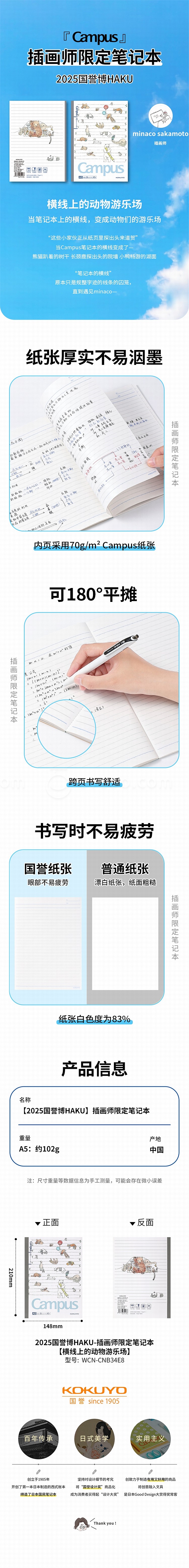 国誉 2025年HAKU插画师限定 无线装订本 (动物游乐场) A5/40页 8mm点线 WCN-CNB34E8