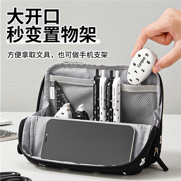 国誉 Campus网格收纳笔袋 (黑色) 小号 WSG-PC302D