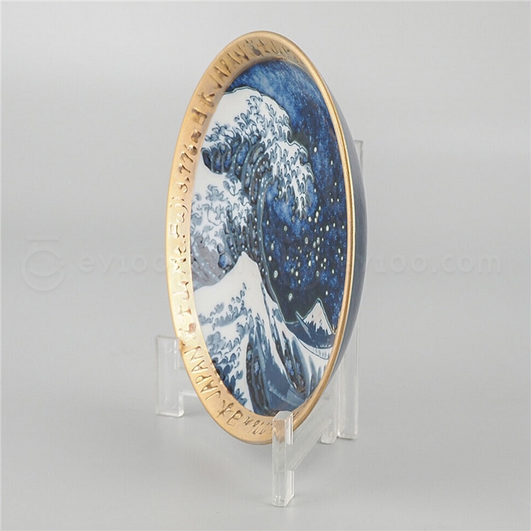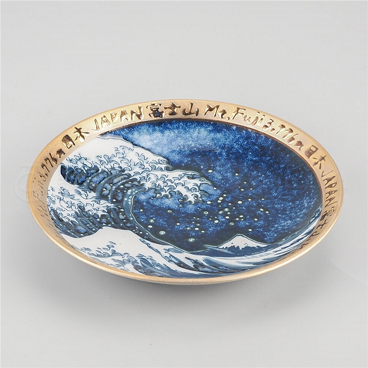 日本产 神奈川沖浪里 5寸皿(青)绿金 060097