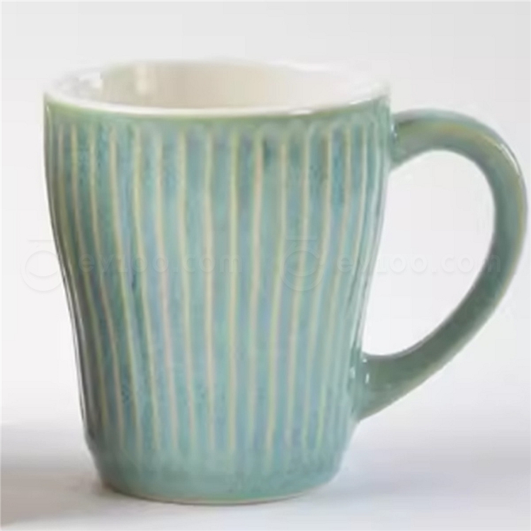 美浓烧 日本进口 浮雕陶瓷马克单杯 绿色