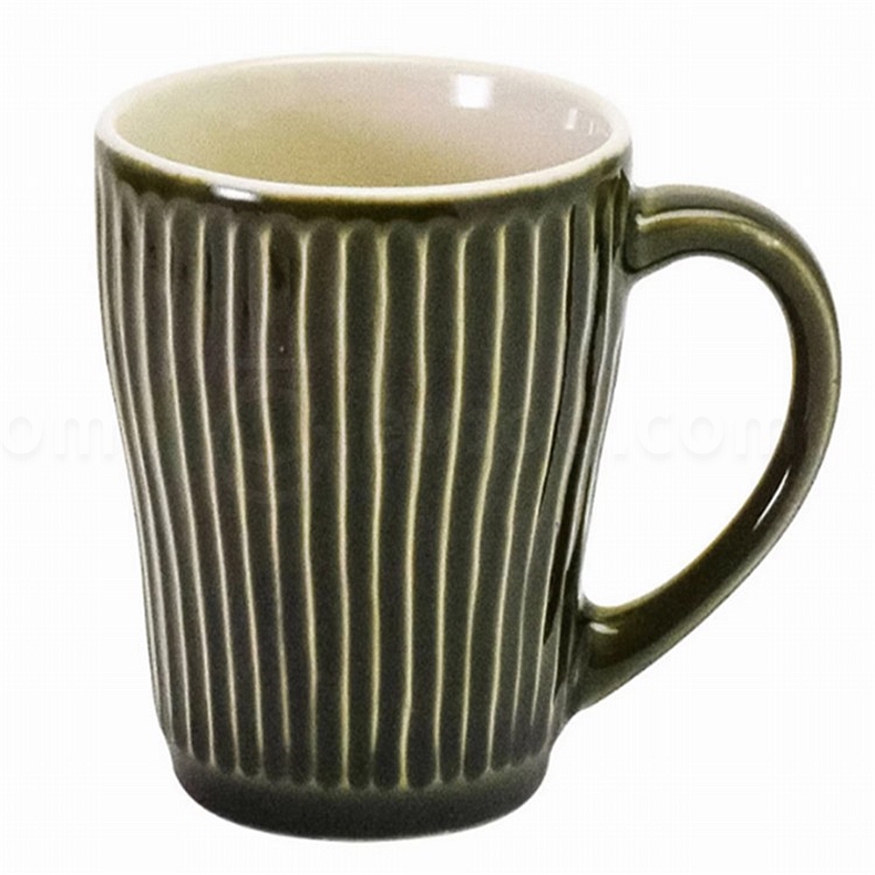 美浓烧 日本进口 浮雕陶瓷马克单杯 深绿