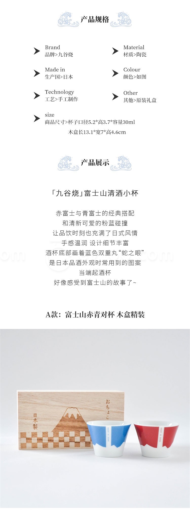 九谷烧 富士山粉蓝对杯木盒精装 148999